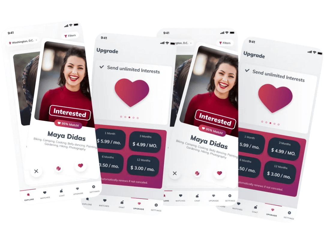 We use a combination of cross-platform developmental frameworks and a mix of native and custom widgets to ensure your dating app development adheres to the latest industry standards and performs on par with the competition as our UI and UX exceed them.